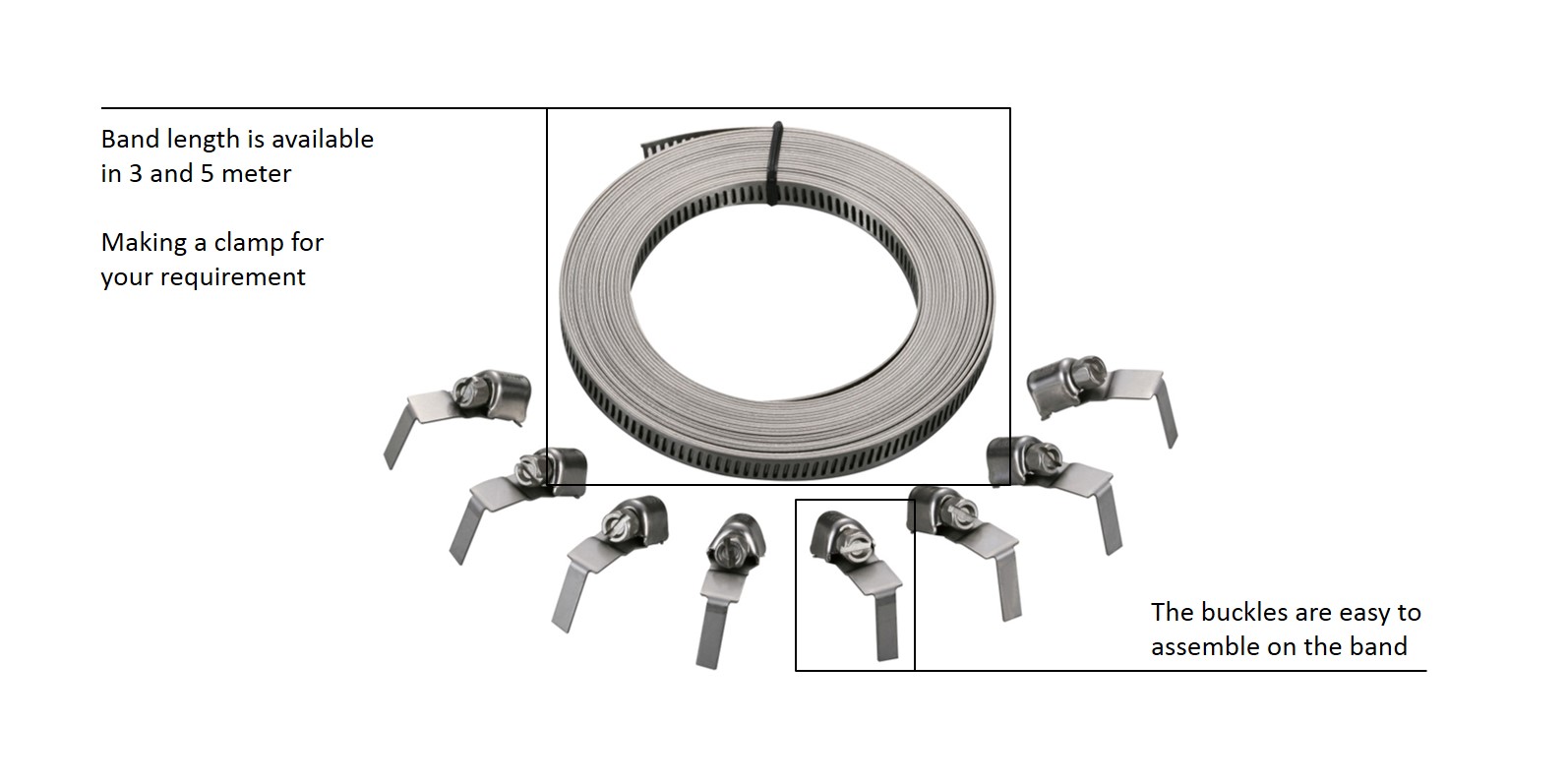 EVEREON endless band clamps offer 3M or 5M length band with 8 buckles. You can make your own size clamps instead of buying various size clamps.