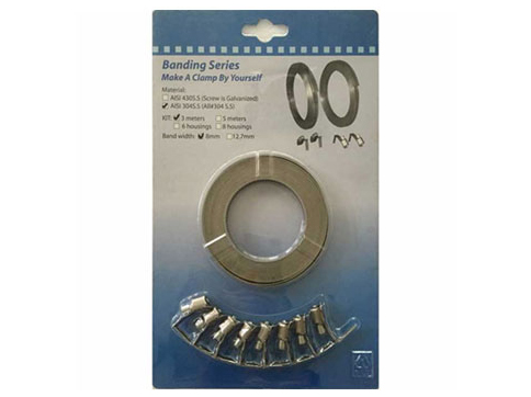 EVEREON endless band clamps are packed in blister card packaging, 1 band and 8 buckles packed in each set.