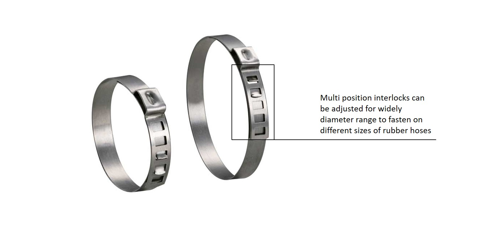 • The outside interlock, smooth band and burr-free edge prevent hoses from damaging during installation.