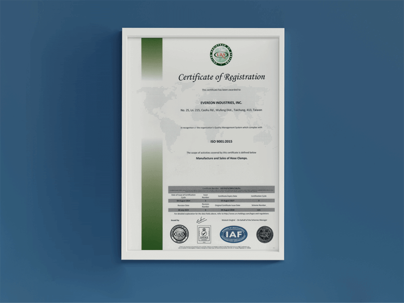 永德興股份有限公司是德式管夾、美式管夾、高扭力管夾、耳式管夾及特殊管夾的頂尖製造商,管夾種類多元,尺寸齊全且適用於範圍廣泛的各種工業和商業軟管應用,包括汽車、工業器材、水電工程、農業、船舶及重工業市場。 透過第三方國際認證,我們持續優化管理體系,致力於為客戶提供品質穩定的管夾產品,並為我們的團隊打造健康福祉的職場環境。